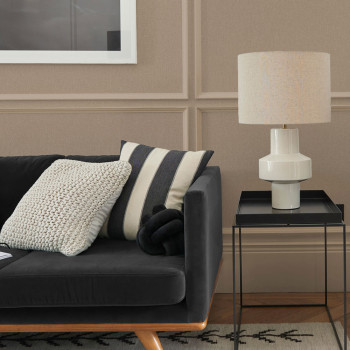 Smooth wallpaper, fabric-look design in shades of beige and beige-grey.