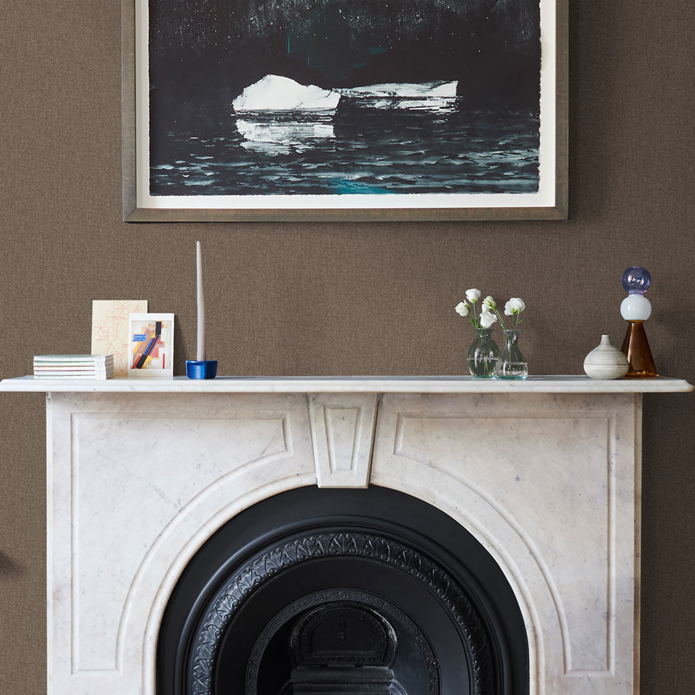 Smooth non-woven wallpaper, design imitating fabric structure in shades of chocolate brown.