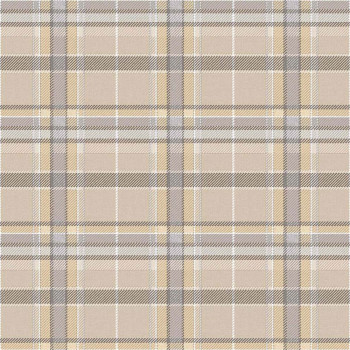 Non-woven wallpaper, imitation tartan fabric in shades of beige, brown and grey.