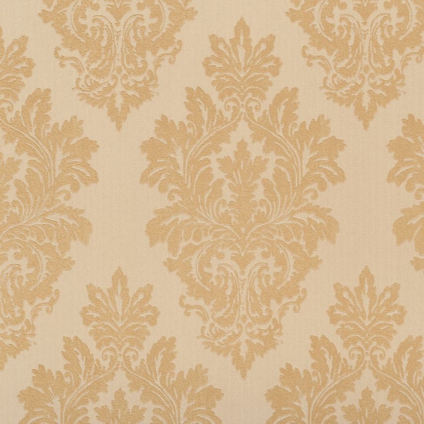 Ocher-gold ornamental pattern on a semi-glossy light beige background.