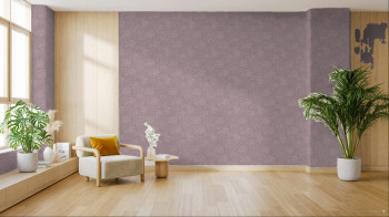 Non-woven wallpaper, unconventional floral pattern in shades of purple, embossed texture. Luxury retro wallpaper will create a playful atmosphere in your bedroom or living room.