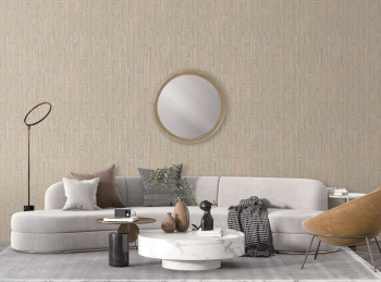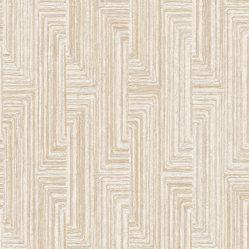 Non-woven wallpaper with vinyl surface, geometric pattern, string texture, shades of cream and beige.