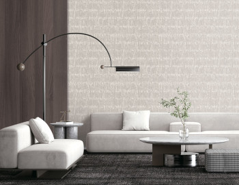 Non-woven wallpaper with vinyl surface, embossed texture, semi-gloss cream-beige.