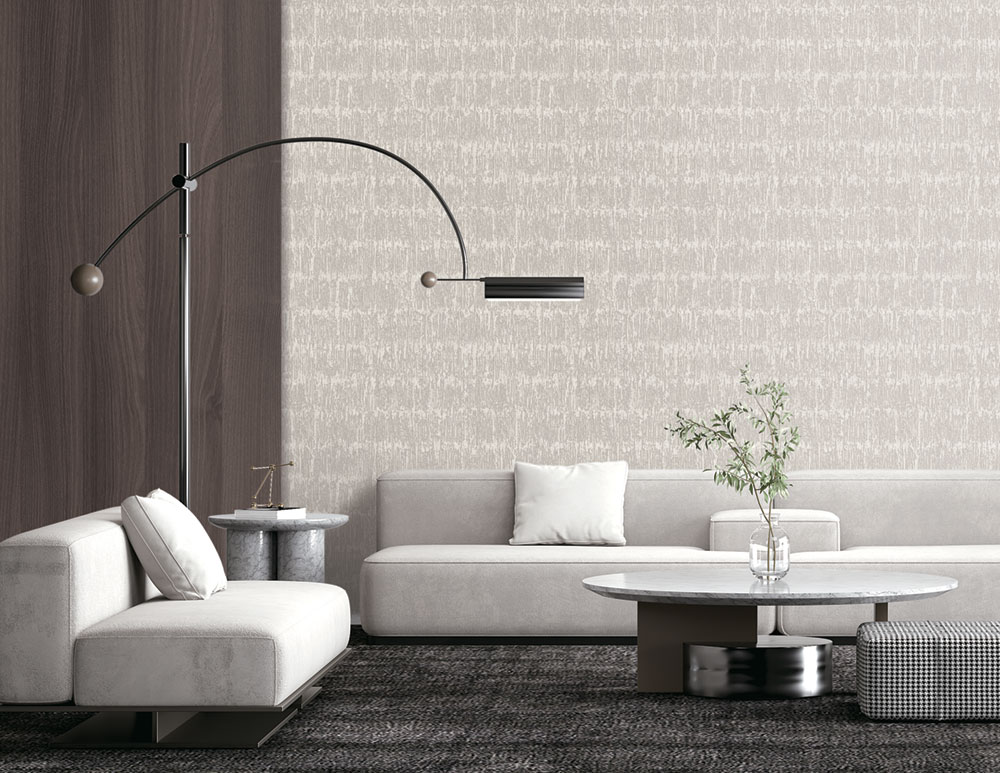 Non-woven wallpaper with vinyl surface, embossed texture, gray / gray-beige / sand.