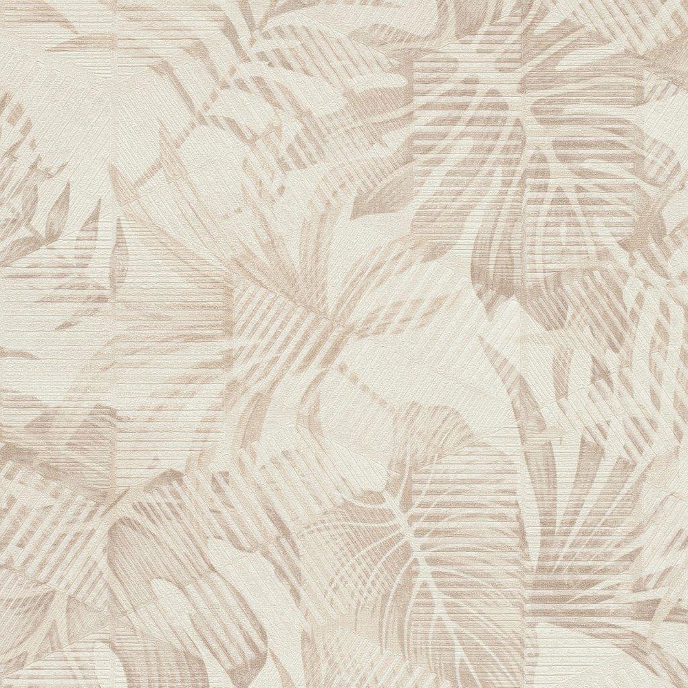 Tropical leaves design, background non-traditional geometric pattern in shades of a semi-glossy creamy.