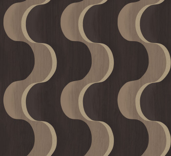 Smooth non-woven wallpaper, 3D wave effect in shades of matte brown, black and semi-glossy golden-beige.