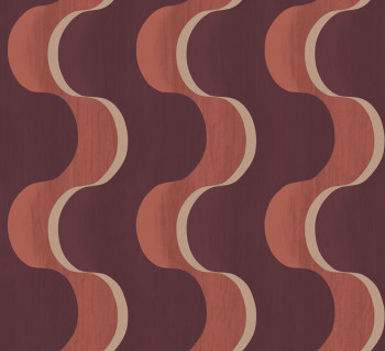 Smooth non-woven wallpaper, 3D wave effect in shades of matte burgundy, terracotta brown and semi-gloss beige.