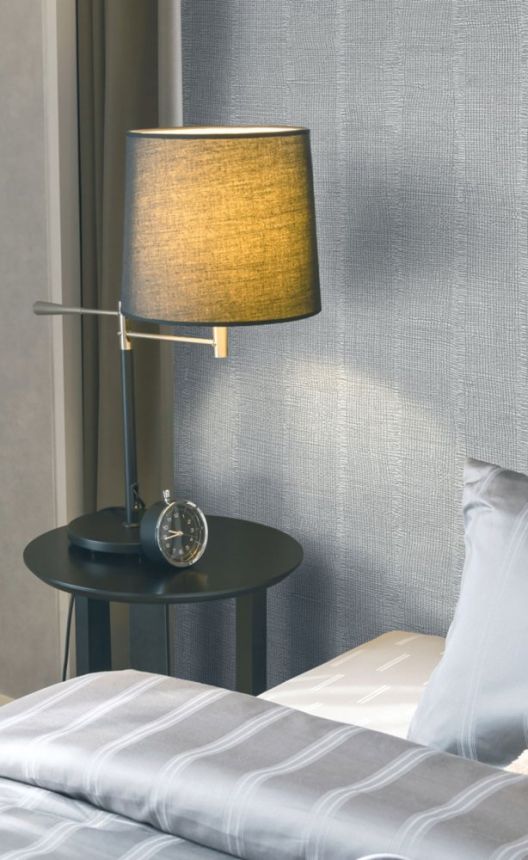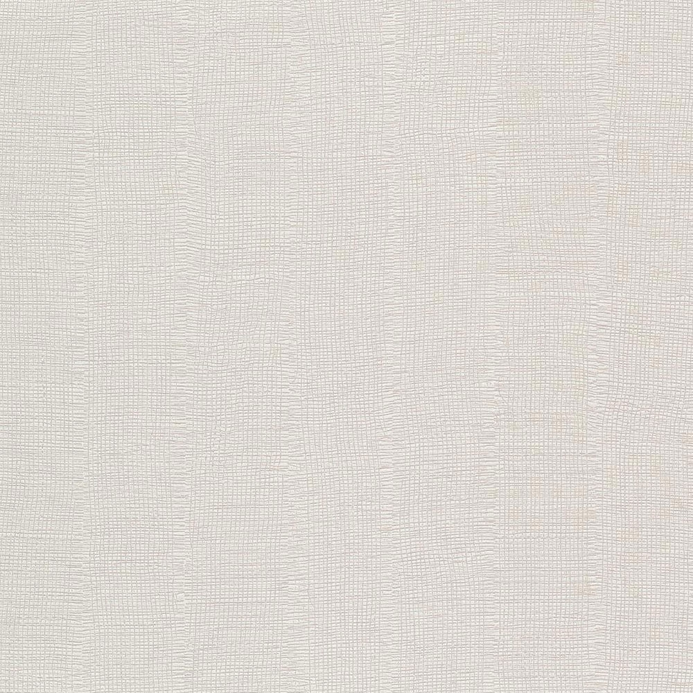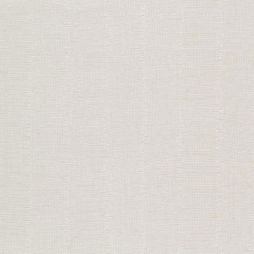 Coarse fabric design with an irregular texture, which creates stripes. In gray-beige shades, silvery semi-gloss. Non-woven backing, vinyl surface.