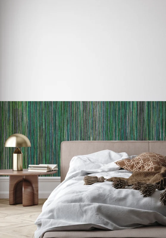 Non-woven wall mural, imitation of sisal mat in shades of green, grey and brown.