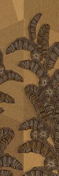 Non-woven wall mural, background evoking coarser textile and lines forming an ethno pattern of leaves, shades of brown.
