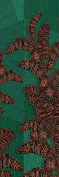 Non-woven wall mural, background evoking coarser textile and lines forming an ethno pattern of leaves, shades of green, brown, brick red.