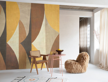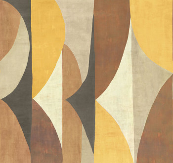 Non-woven wall mural, subtly embossed, graphic patterns, shades of brown, ochre / curry and beige.
