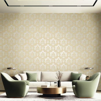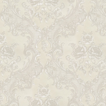 Luxury non-woven wallpaper with vinyl surface, semi-glossy background, cream baroque pattern.