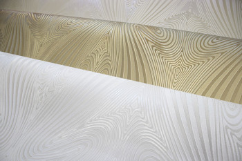 Luxury metallic cream non-woven wallpaper with vinyl surface. The shades change according to the light falling on the wallpaper.