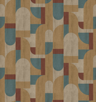Non-woven wallpaper, geometric patterns in shades of brown and green.