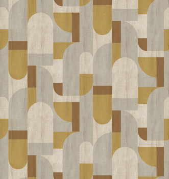 Non-woven wallpaper, geometric patterns in shades of beige, grey and brown.