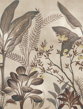 Non-woven wall mural, plants and leaves in shades of beige, brown and grey.
