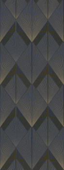 Non-woven wallpaper, graphic pattern in Art Deco style, shades of blue and brown.