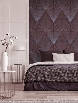 Non-woven wallpaper, graphic pattern in Art Deco style, shades of burgundy.