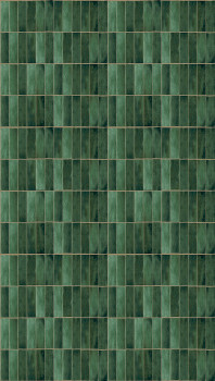 Non-woven wallpaper, imitation of tiles, shades of dark green.