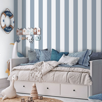 Non-woven wallpaper, blue-white, stripes, 293-2, Enzo, ICH Wallcoverings