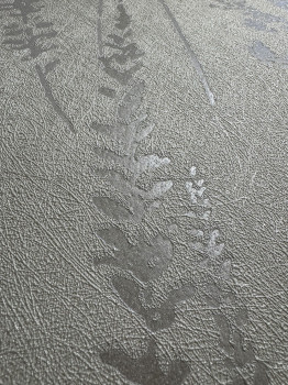 Non-woven wallpaper with vinyl surface, pattern of meadow flowers and grasses in shades of white and gray-silver - fine fibrous texture.