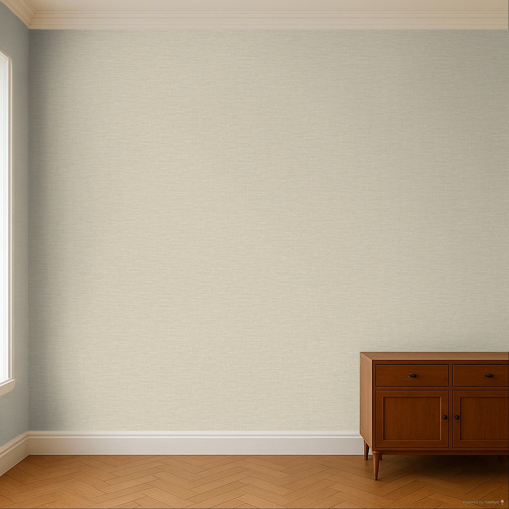 Non-woven wallpaper with vinyl surface, imitation of coarser fabric in shades of beige.
