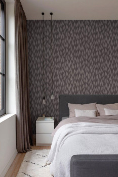 Impressive wavy pattern, anthracite semi-glossy color, pattern outlines with silver glitters. Non-woven wallpaper with a plastic vinyl surface.