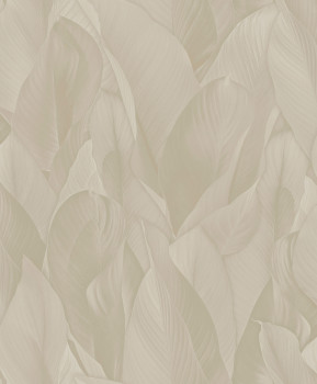 Distinctly embossed non-woven wallpaper with vinyl surface, leaf motif in shades of cream.