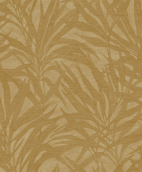 Luxury non-woven wallpaper with vinyl surface, coarse texture with leaf motifs in shades of ocher and beige.