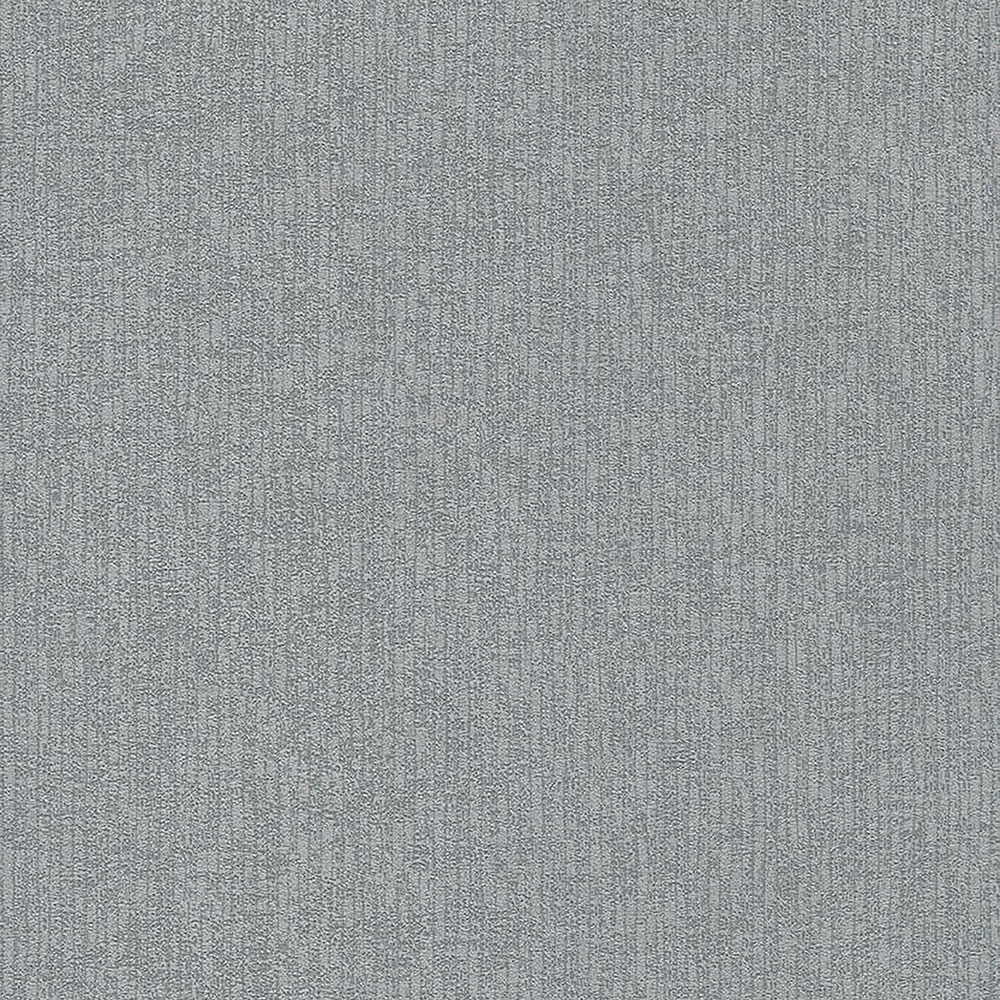 Finely embossed gray non-woven wallpaper with tiny silvery glitters and glosses shine through. Non-woven wallpaper with a plastic vinyl surface.
