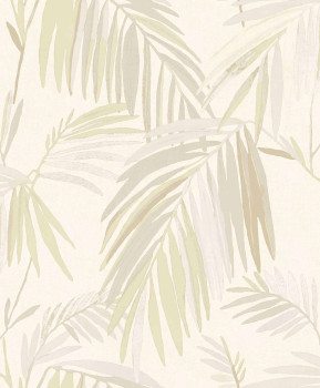 Luxury non-woven wallpaper, embossed semi-gloss palm leaves, shades of light beige.