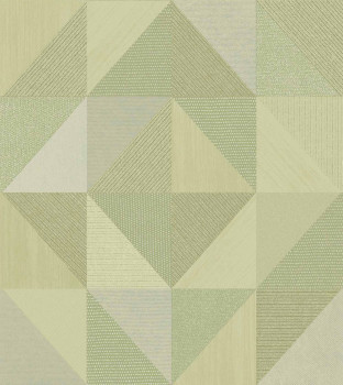 Luxury non-woven wallpaper, geometric pattern created with various textures, shades of green with a subtle semi-gloss finish.