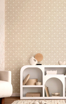 Luxury non-woven wallpaper, geometric interwoven pattern, shades of brown and beige.