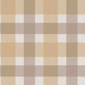 Wallpaper with a vinyl surface, imitation of checkered fabric in grey and beige tones.