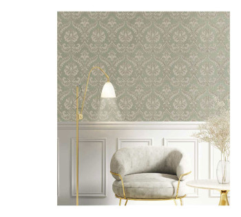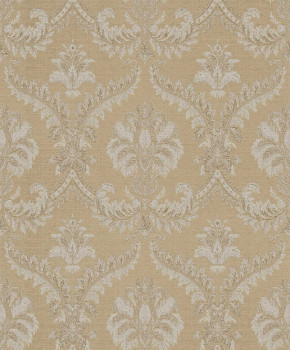 Non-woven wallpaper with vinyl surface, baroque damask pattern, shades of brown and beige.