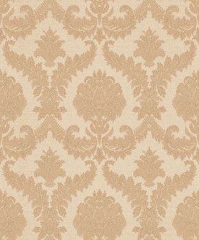 Non-woven wallpaper with vinyl surface, shades of brown and beige, baroque damask pattern.