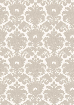 Non-woven wallpaper with vinyl surface, baroque damask pattern - cream background, pattern shades of beige.