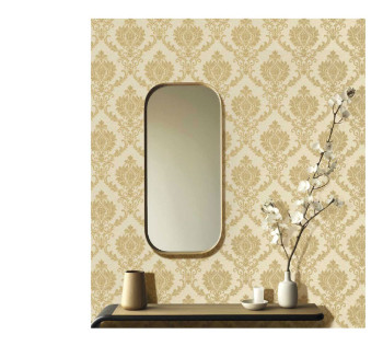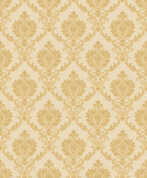 Non-woven wallpaper with vinyl surface, baroque damask pattern - beige background, gold pattern.