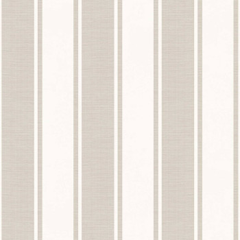 Non-woven wallpaper with vinyl surface, shades of cream and beige, stripe pattern, fabric texture.