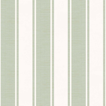 Non-woven wallpaper with vinyl surface, shades of cream and green, stripe pattern, fabric texture.