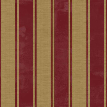 Non-woven wallpaper with vinyl surface, shades of burgundy and gold, stripe pattern, fabric texture.