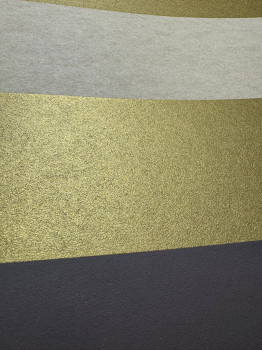 Non-woven wallpaper, stripes in shades of brown, black, ochre and gold, matte, semi-gloss.
