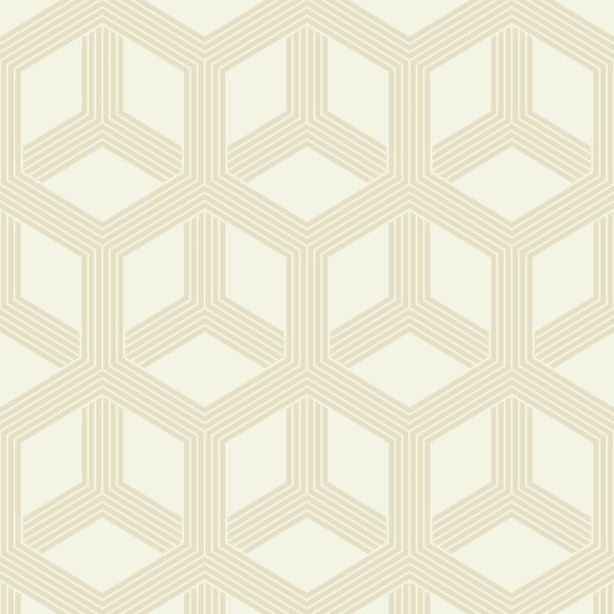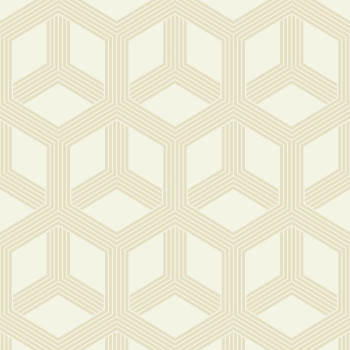 Geometric pattern consists of golden glitters on a creamy background. Pattern creates a spatial effect. Non-woven backing, vinyl surface.