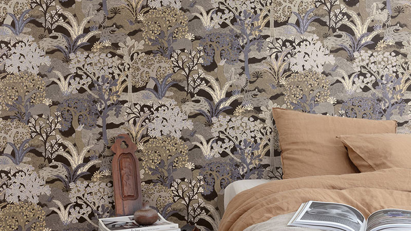 Here you'll find animal motifs, jungle scenes with mythical creatures, and intricate floral patterns that beautifully contrast with rich textures. The colour palette is carefully curated – from retro blue and soft nude to warm ginger tones and deep jungle green. The result is a blend of luxury, modernity and natural appeal.