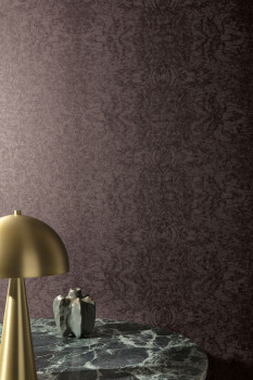 Wallpaper inspired by exotic wood texture, dark brown shades with tiny square pattern, semi-gloss finish.
