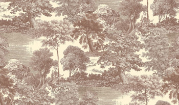 Romantic mural with lightly embossed fabric texture, landscape in shades of brown.