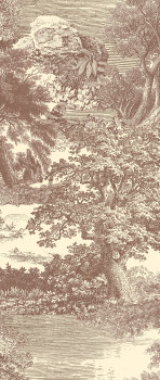 Romantic mural with lightly embossed fabric texture, landscape in shades of brown.