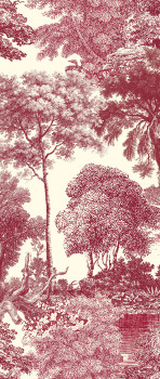 Mural with lightly embossed fabric texture, romantic landscape in burgundy red tones.