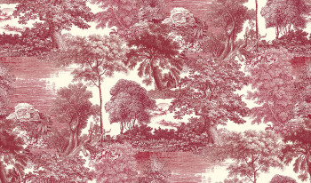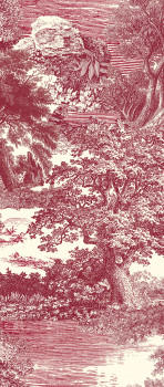 Mural with lightly embossed fabric texture, romantic landscape in burgundy red tones.